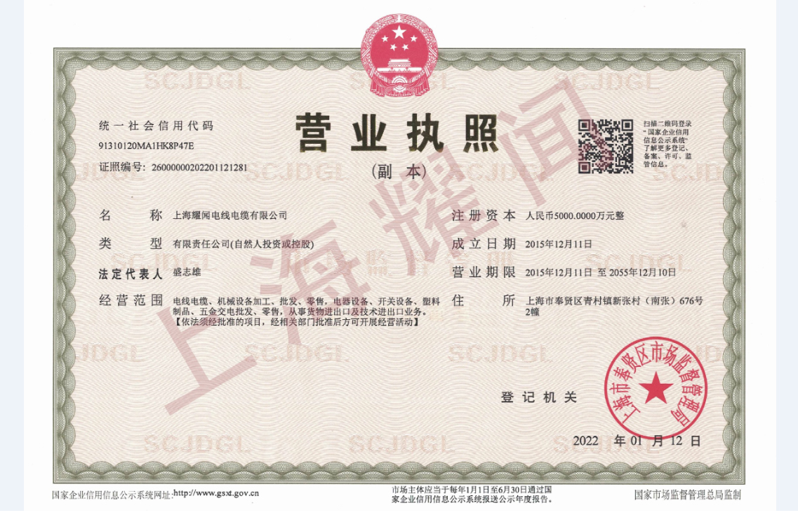 上海耀聞電線電纜有限公司成立于2015年,注冊資本5000萬元人民幣。是一家專注于電線電纜的研發(fā)、生產(chǎn)及銷售的高新技術企業(yè)。